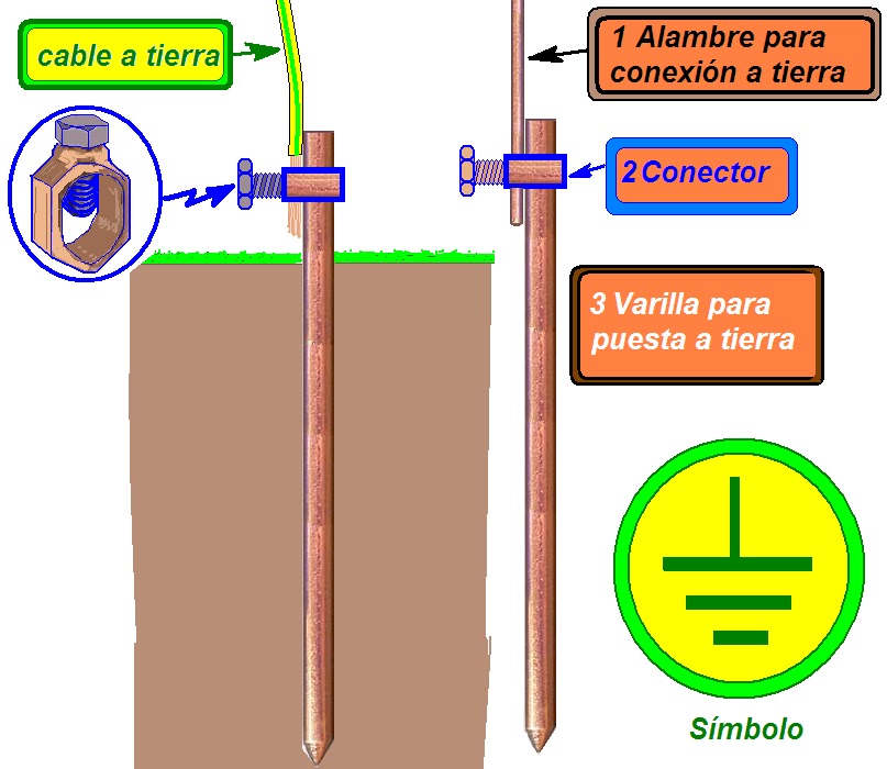 La puesta a tierra general normalmente se consigue a través de un anillo o trenza de conductores horizontales desnudos y sepultados, complementado con electrodos verticales para achicar la resistencia.