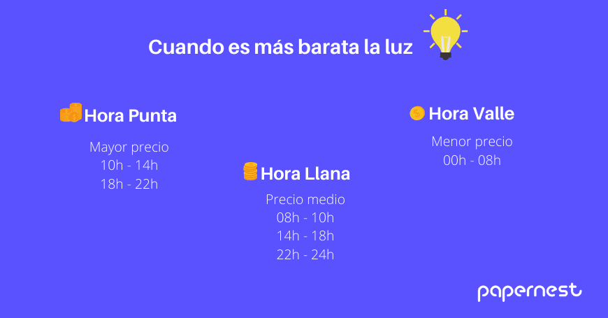 Cuáles son las horas de menos consumo de luz