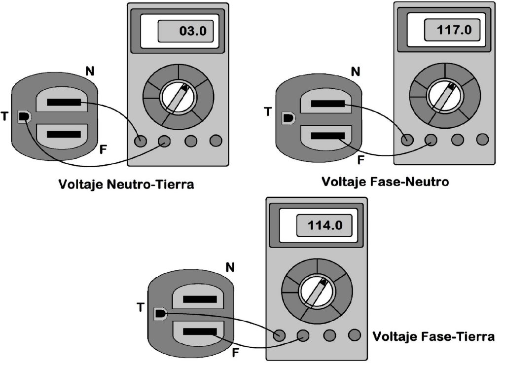 Notificamos a la compañía de servicios públicos sobre el inconveniente y nos detallaron que van a tomar medidas para solventarlo (que tras 5 días todavía no lo hicieron). Hemos informado al cliente de las medidas a tomar de un enchufe o enchufe a fin de que por el momento no corra peligro. Para esto sencillamente cogemos un multímetro digital y medimos entre:
